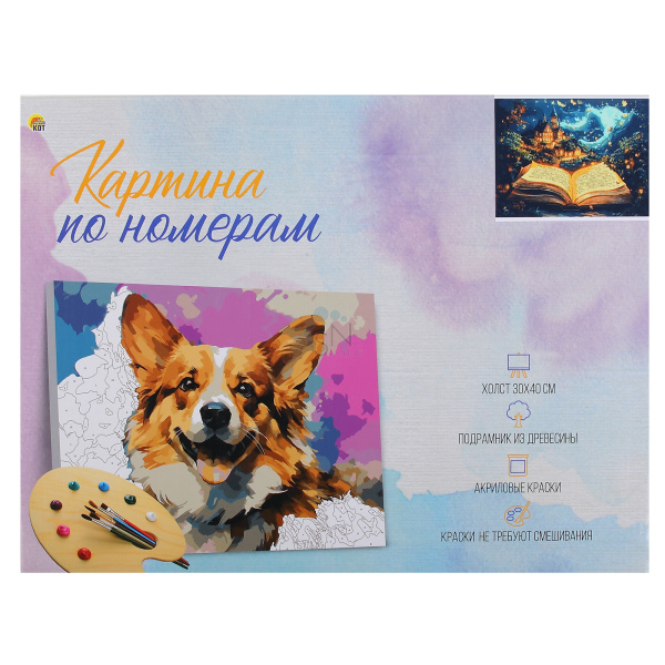Картина по номерам 30*40 Рыжий кот Книга сказок холст на подрамнике ХК-3902