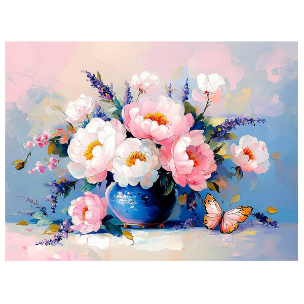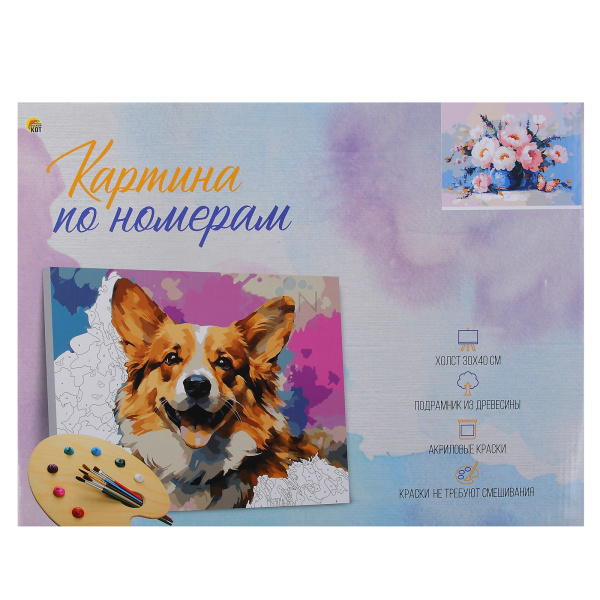 Картина по номерам 30*40 Рыжий кот Нежные пионы в вазе холст на подрамнике ХК-3272