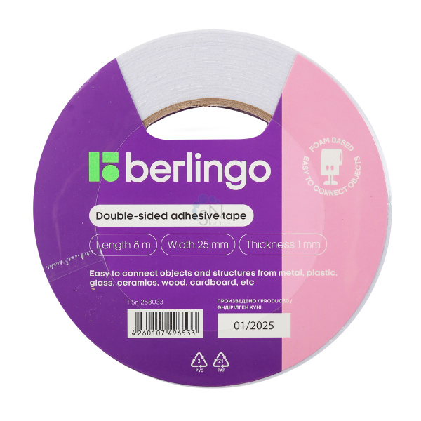 товары для школы и офиса Лента двустор 25мм*8м вспен полипроп Berlingo FSn_258033